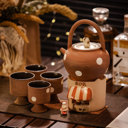 紫砂泥烤奶明火养生壶温茶壶四杯茶炉提梁壶围炉煮茶旅行一壶四杯