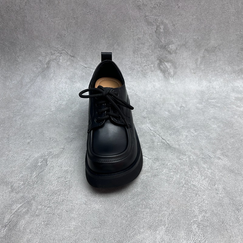 2025断码秋季真皮新款女鞋厚底休闲深口系带时尚牛皮百搭女单鞋