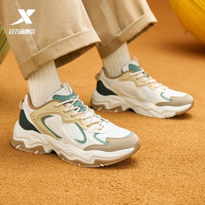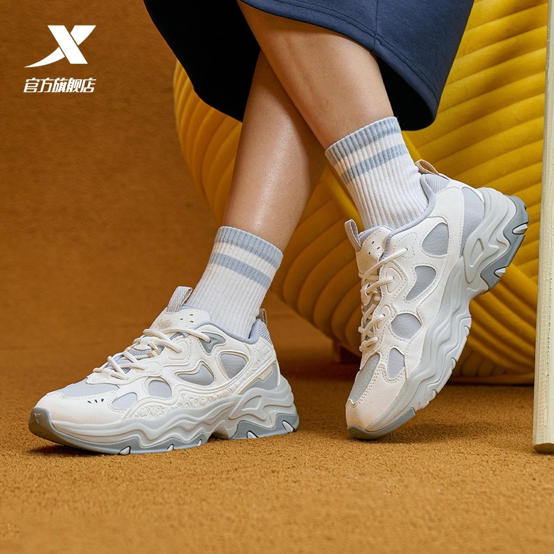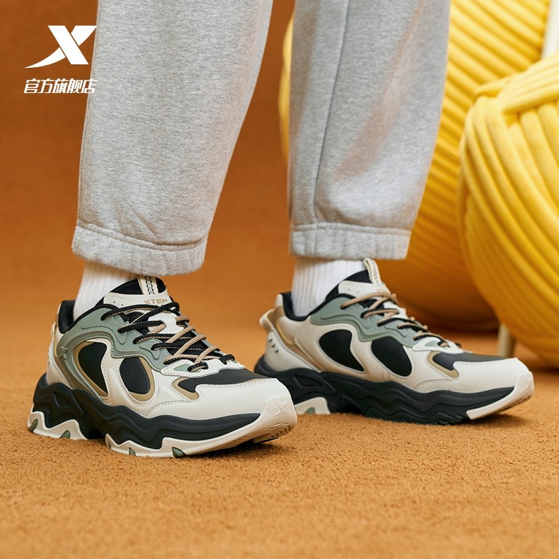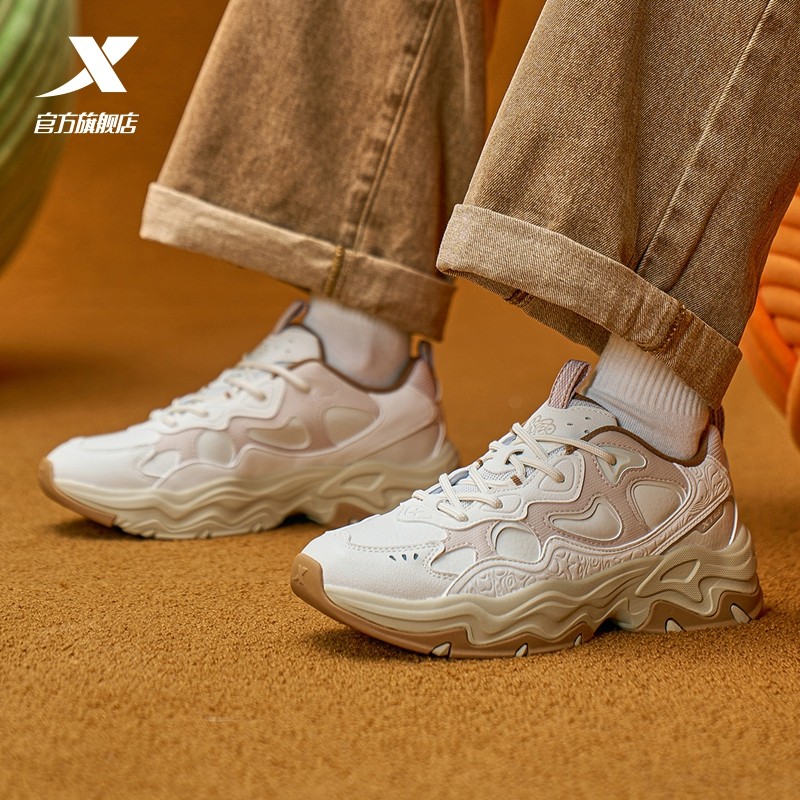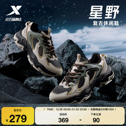 特步星野休闲鞋男鞋冬季革网轻便运动鞋情侣户外鞋复古老爹鞋女鞋