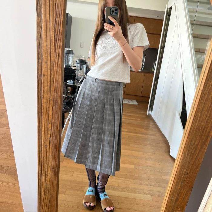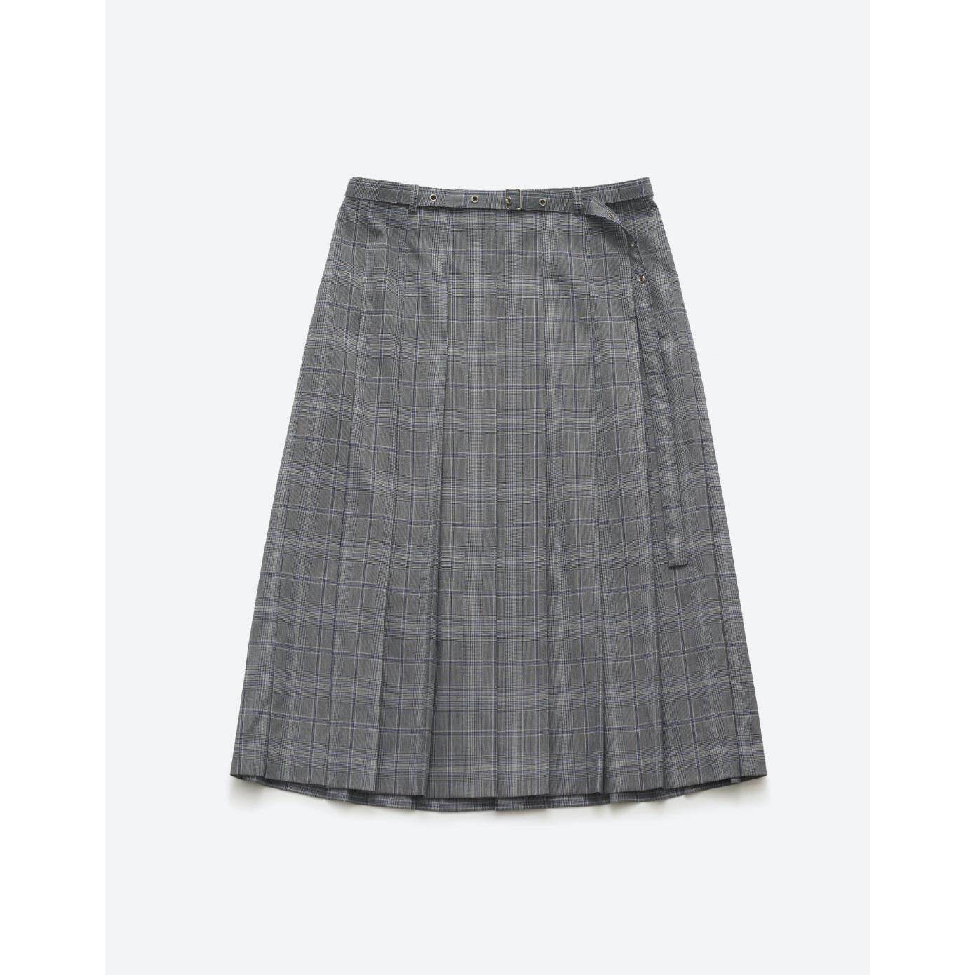 【现货】theBarnnet shell韩版复古高腰显瘦格子腰带半身裙百褶裙