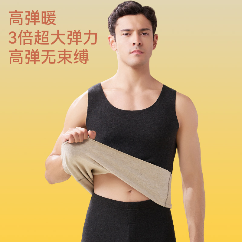 鸭鸭保暖背心男款德绒发热加绒加厚打底衫秋冬山羊绒蚕丝内搭秋衣