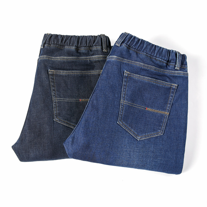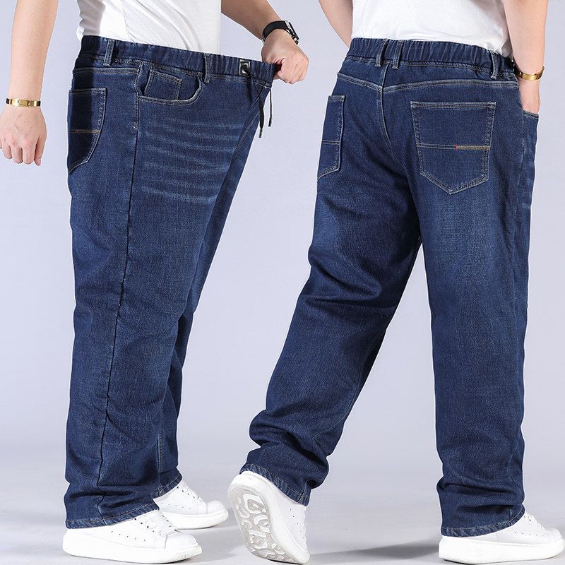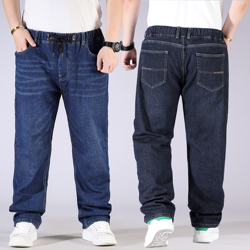 春秋季中老年高腰大码牛仔裤男加肥加大宽松直筒肥佬裤胖子松紧腰