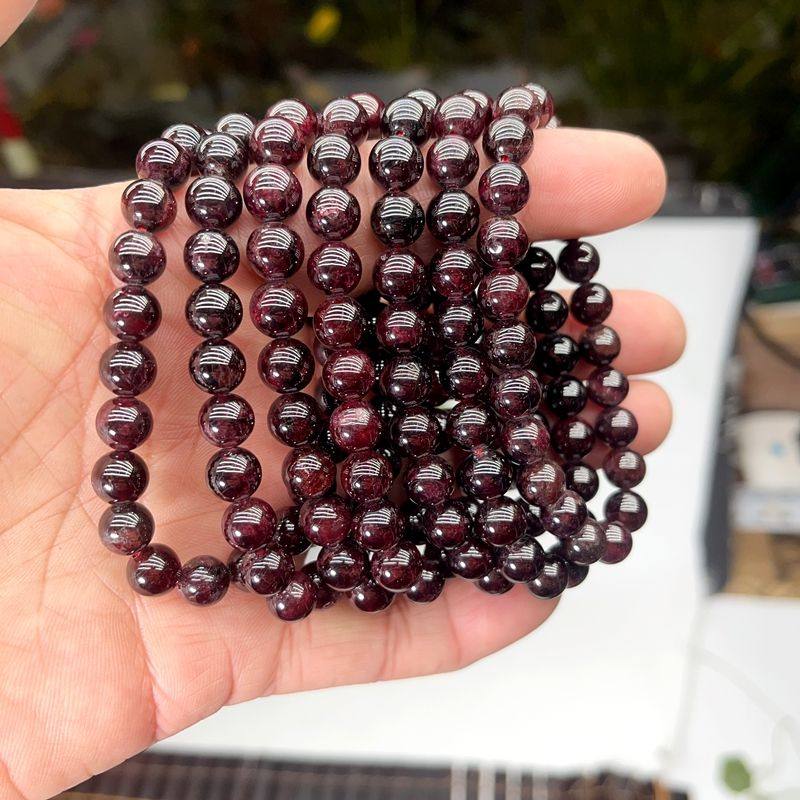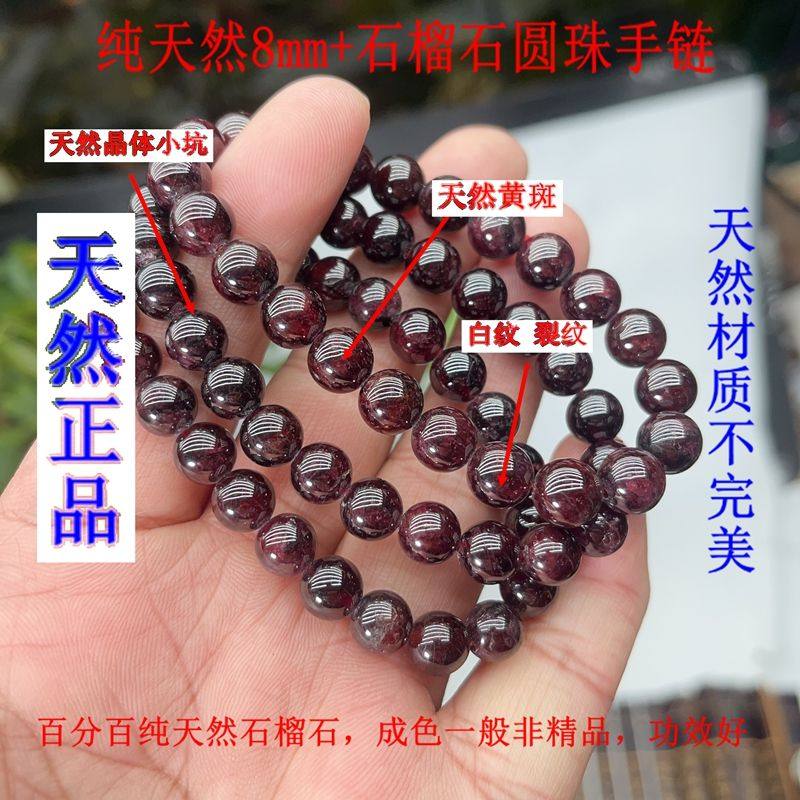 纯天然8mm+石榴石手串手链女款百分百纯天然正品酒红石榴石低价