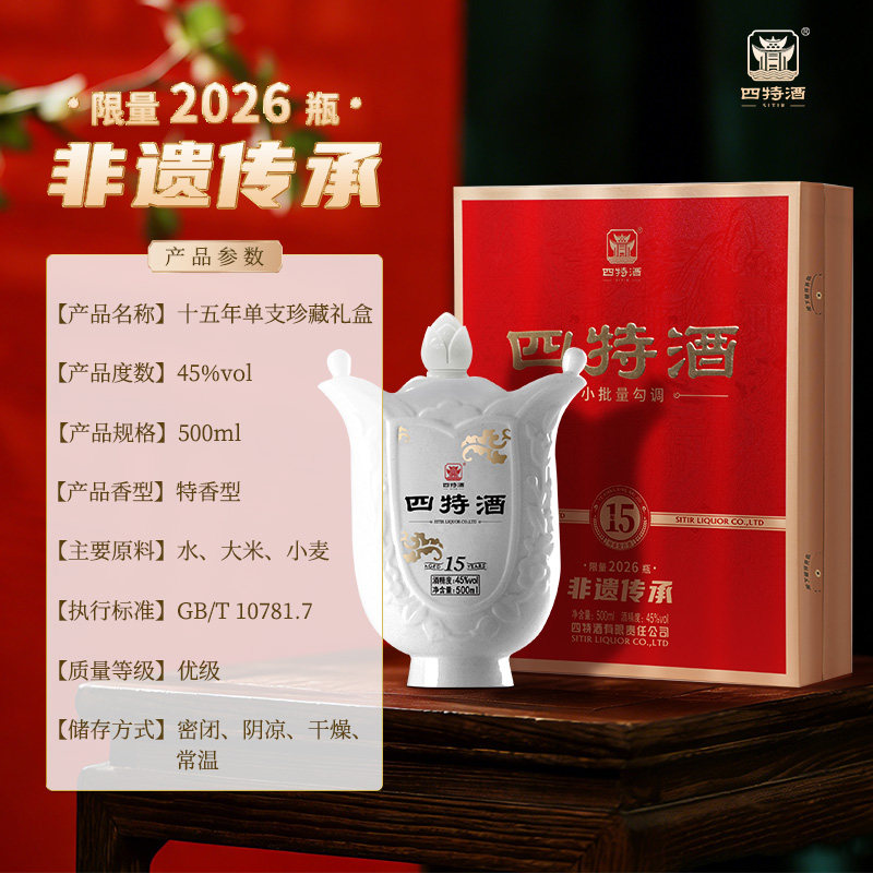 新品上市四特酒45度十五年单支珍藏礼盒500ml特香型白酒官方正品