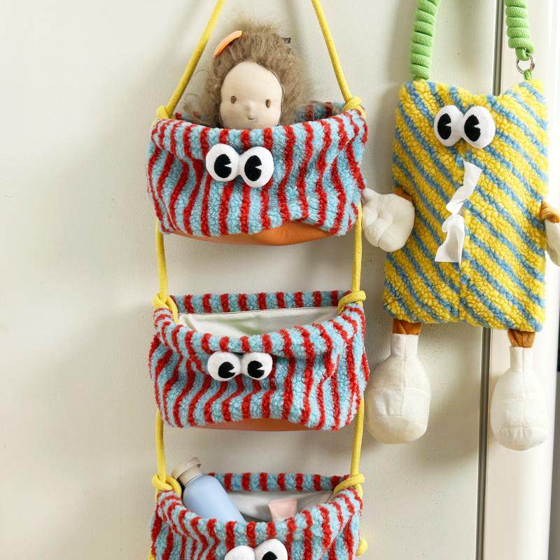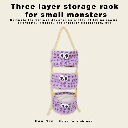 ins卡通挂篮创意小怪兽吊篮三层大容量墙挂式悬挂式储物收纳袋