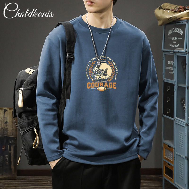 长袖t恤男秋季上衣潮牌纯棉宽松春秋男装ins潮内搭打底衫衣服大码