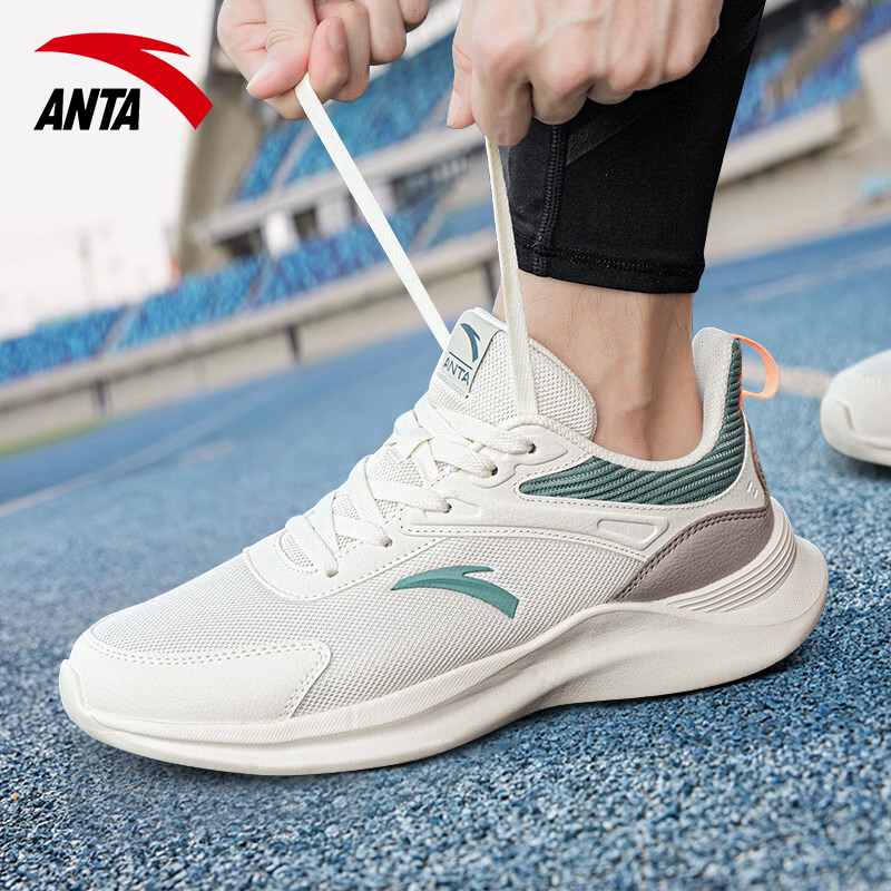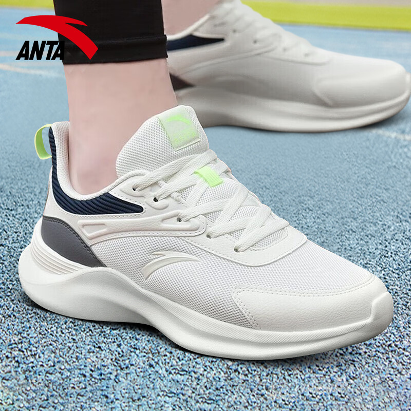 安踏男鞋皮面跑步鞋秋季运动鞋网面休闲鞋透气旅游鞋子时尚慢跑鞋