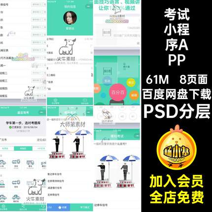 中文驾考学习小程序APPPSD分层UI界面驾校考试微信模板8页面app