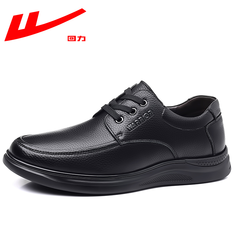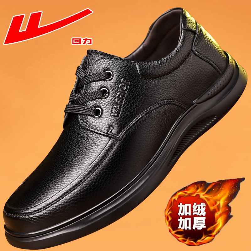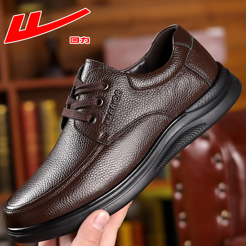 回力皮鞋男春秋季商务休闲鞋男真皮牛皮百搭厚底中年软底爸爸鞋