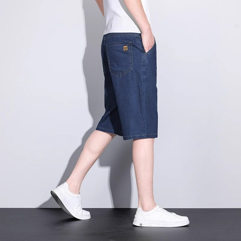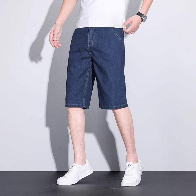 夏季超薄款牛仔短裤男款冰丝五分裤直筒宽松天丝休闲男士弹力中裤