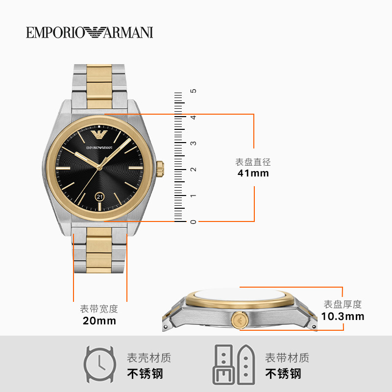 【圣诞礼物】EMPORIO ARMANI/阿玛尼秋冬新款男手表钢带石英腕表