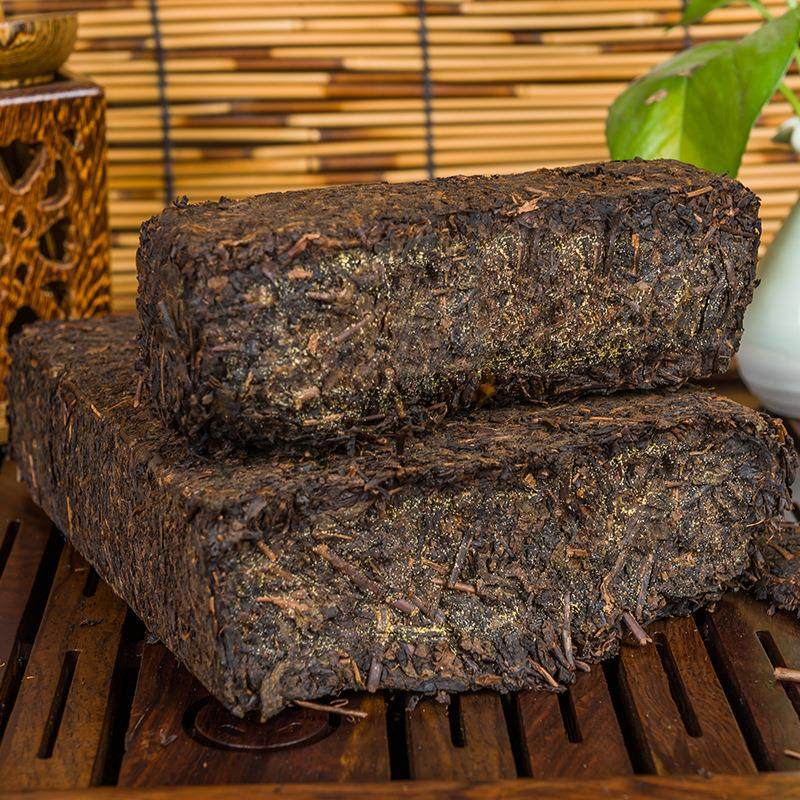 湖南黑茶金花茯砖茶叶湖南安化黑茶 野生原叶手筑2斤养生金茯老茶
