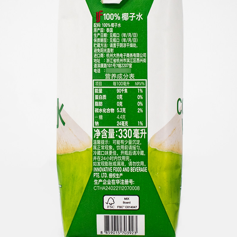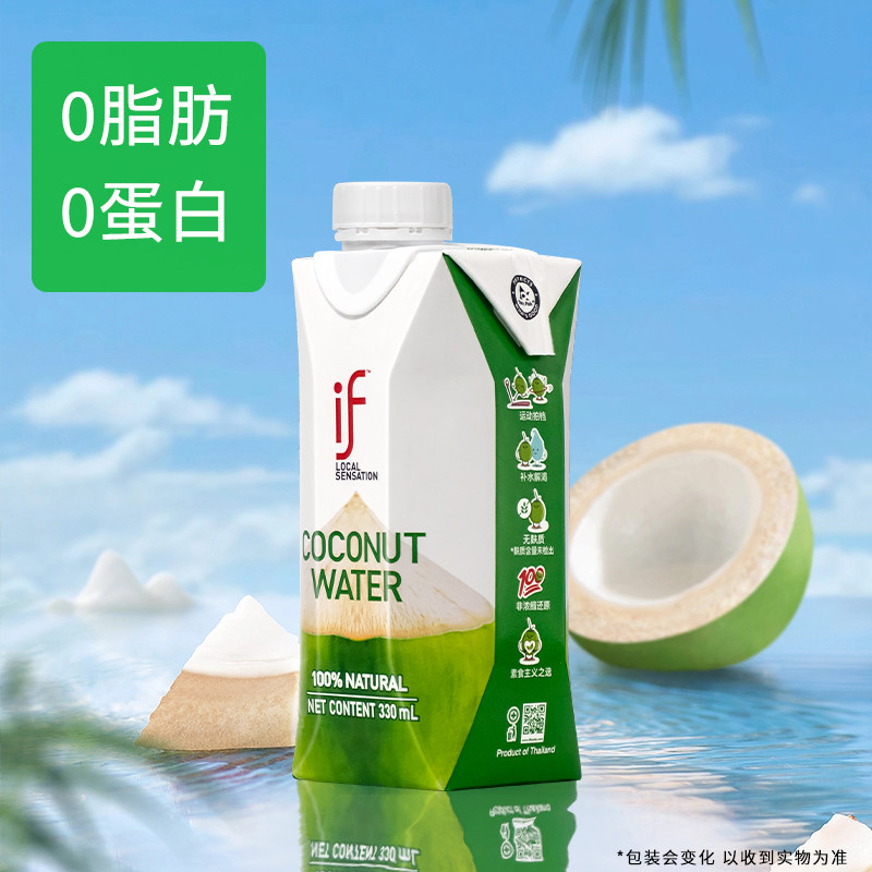 泰国进口if椰子水330ml*24瓶100%椰青水椰子汁果汁电解质饮料整箱