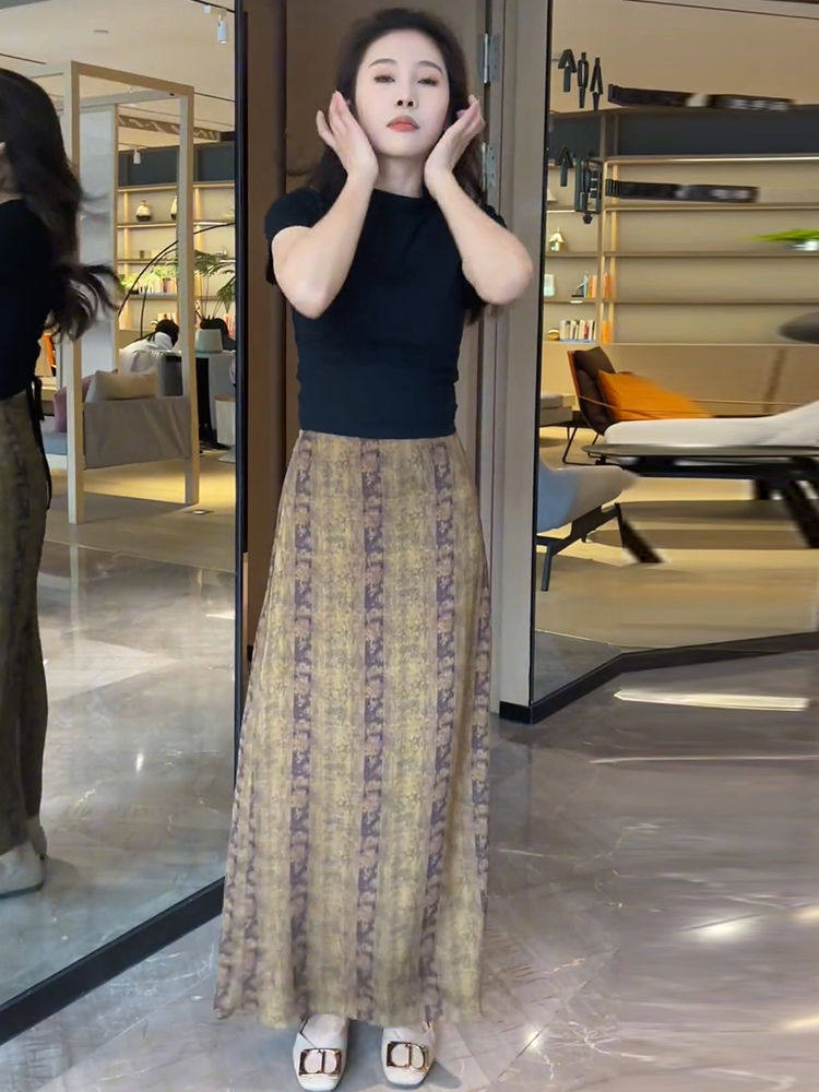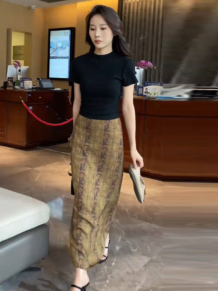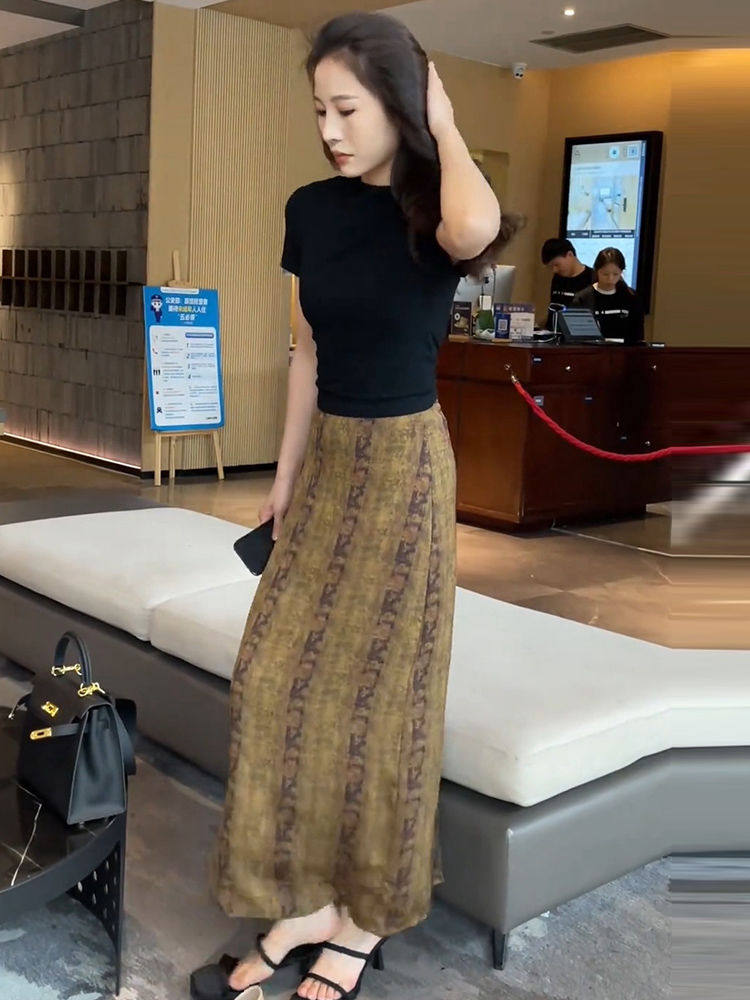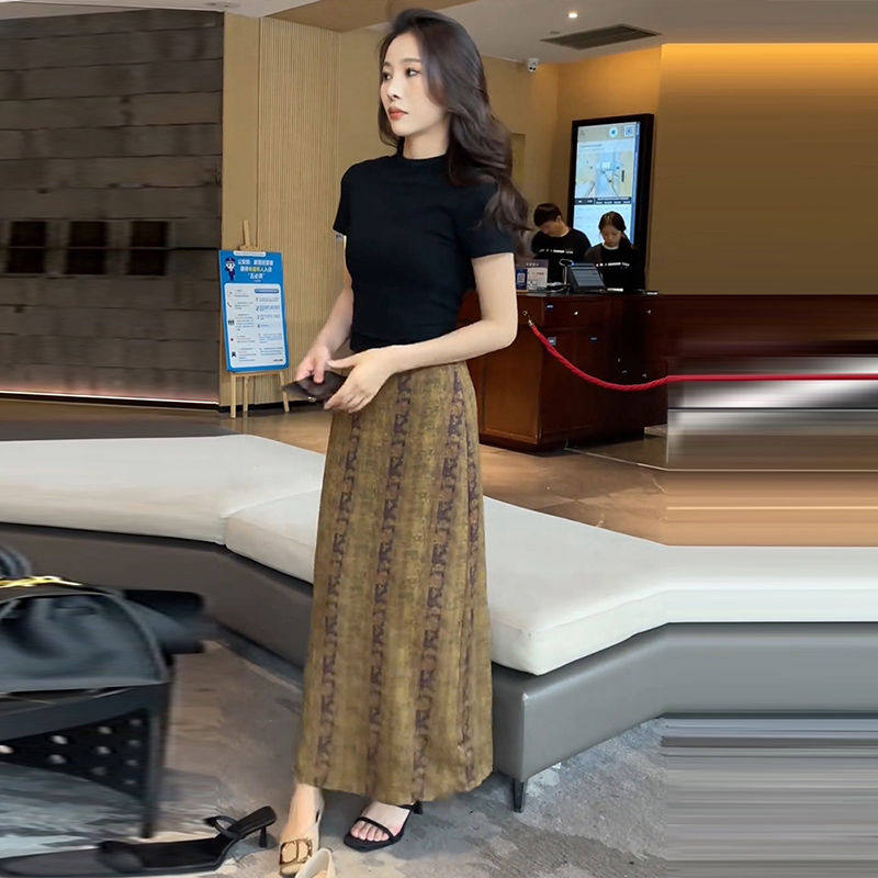 夏装搭配一整套时尚丁达尔穿搭套装女黑色百搭修身短袖t恤半身裙