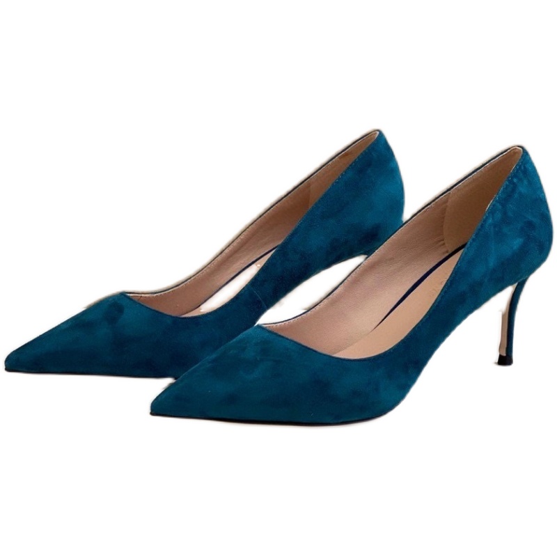 出口美国外贸原单鞋高跟鞋女细跟尖头浅口真羊皮职业2025春秋新款