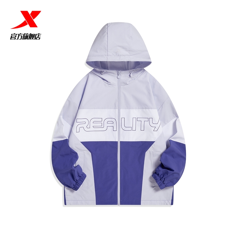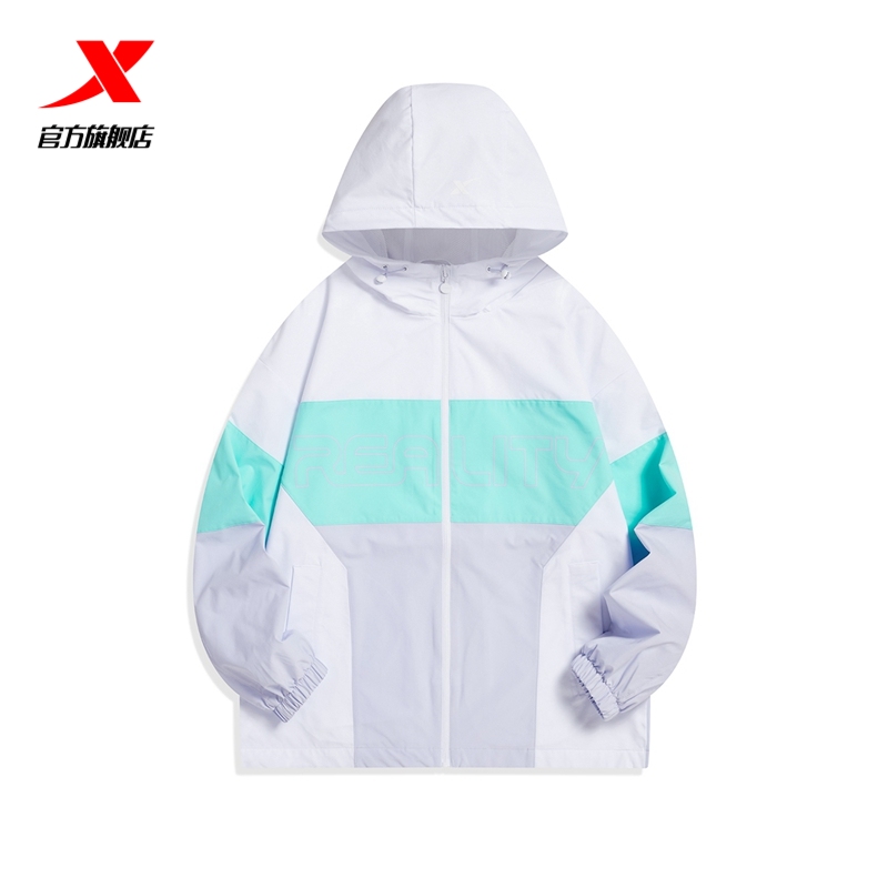 特步运动风衣外套女2023秋季新款撞色宽松双层夹克977328 150276