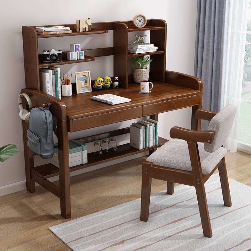 简约现代书桌书架学生学习桌柜椅组合一体桌子实木电脑桌台式家用