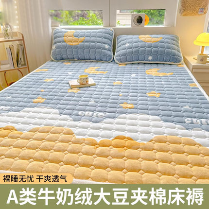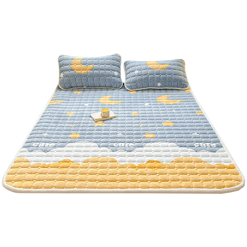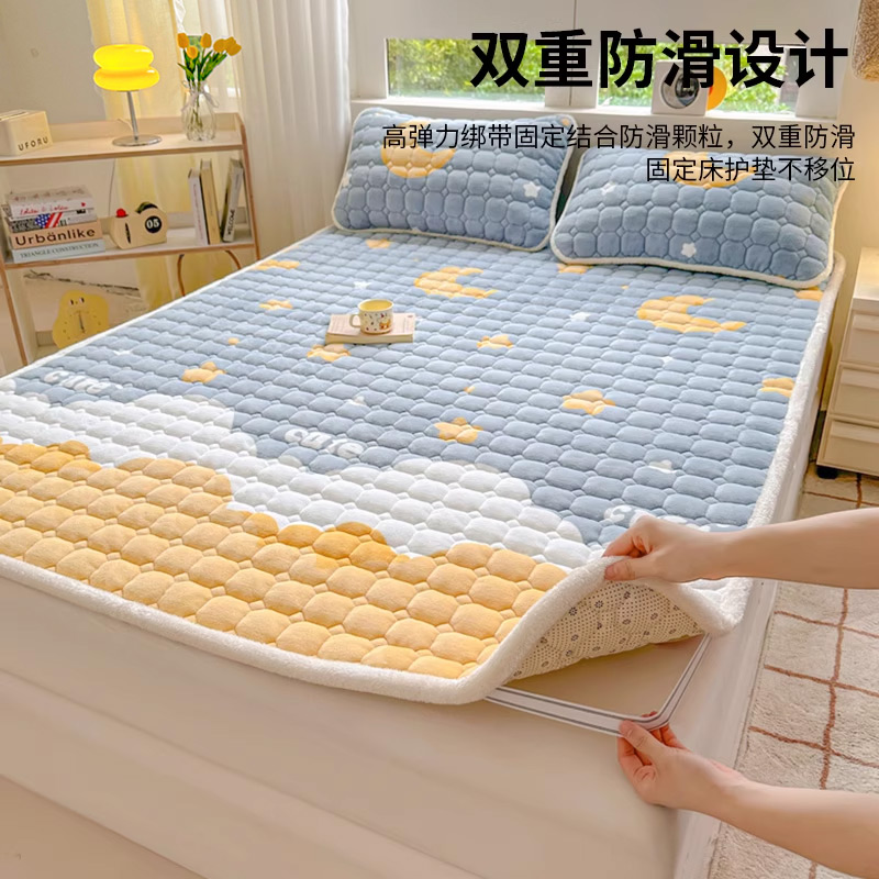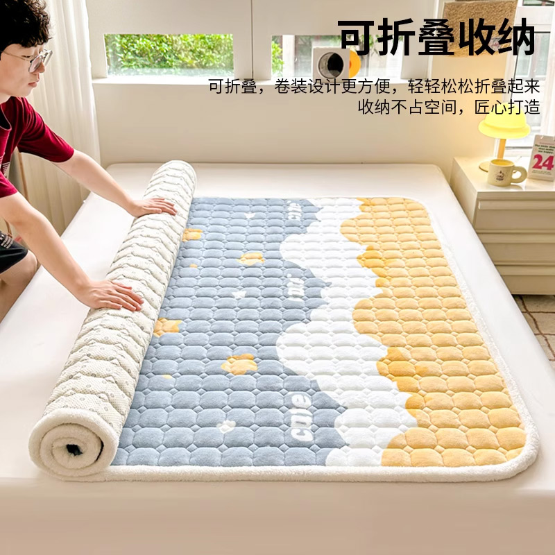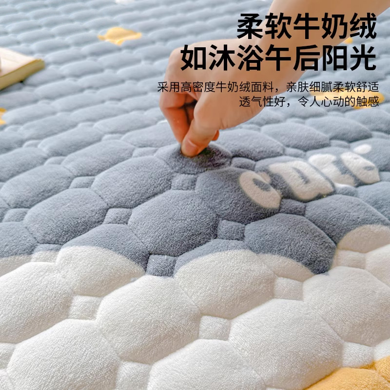 紫罗兰冬季加厚牛奶绒夹棉床垫学生宿舍床褥子榻榻米保暖印花床垫