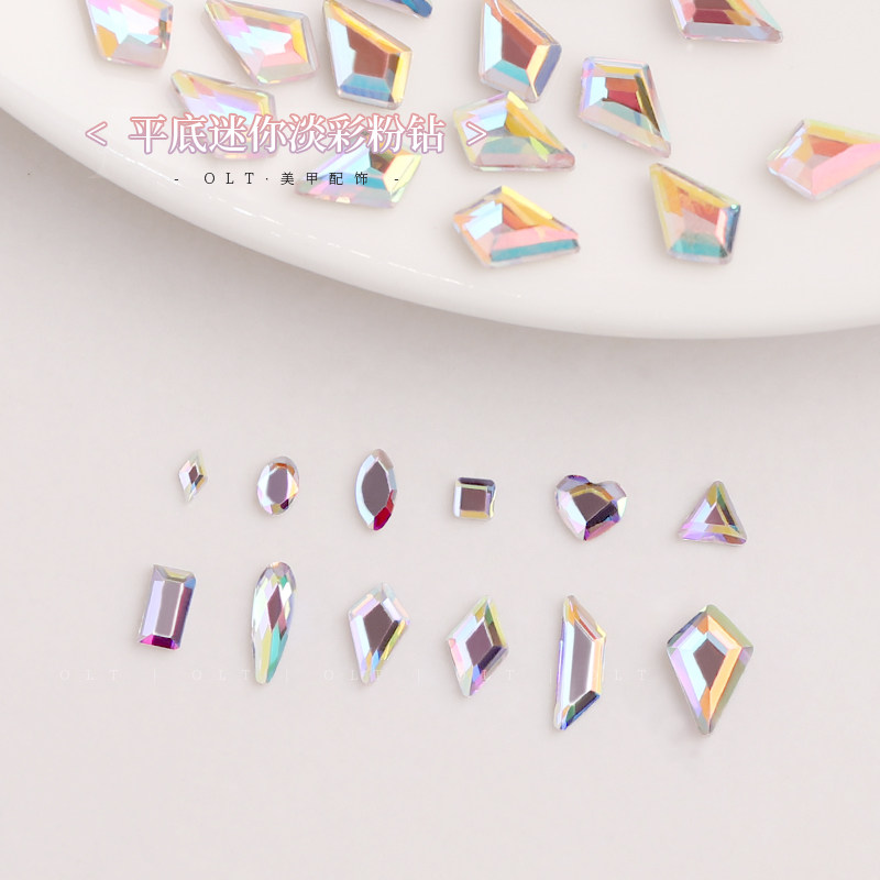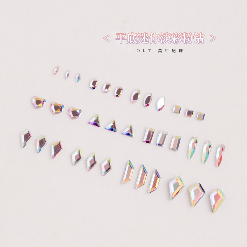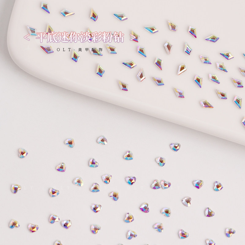 onlyting美甲平底迷你淡彩粉钻水晶异形钻网红同款百搭指甲装饰品