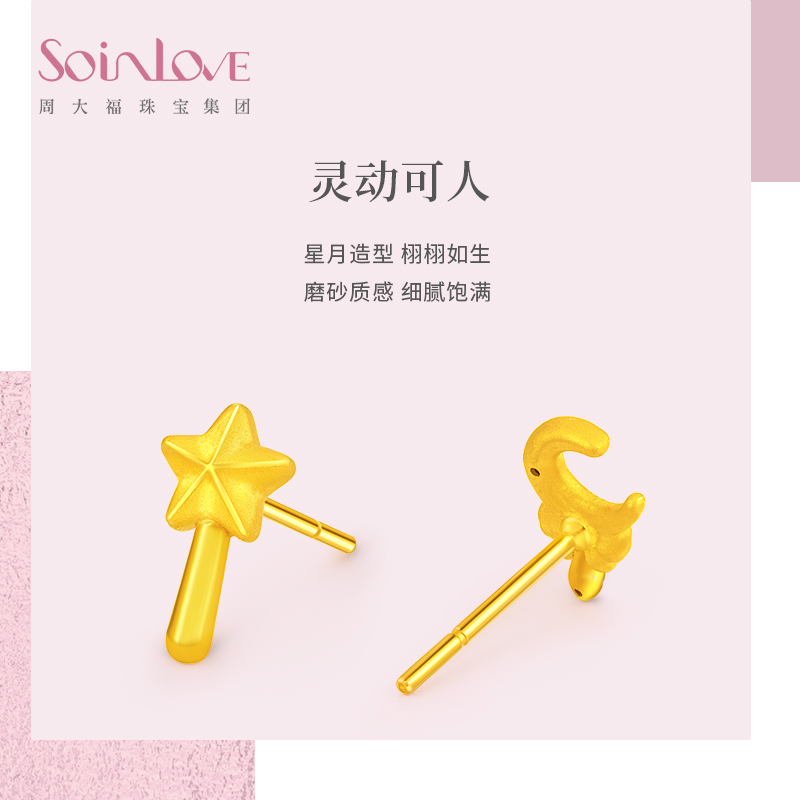周大福SOINLOVE「仙女星」星月仙女棒黄金耳钉足金耳饰圣诞礼物