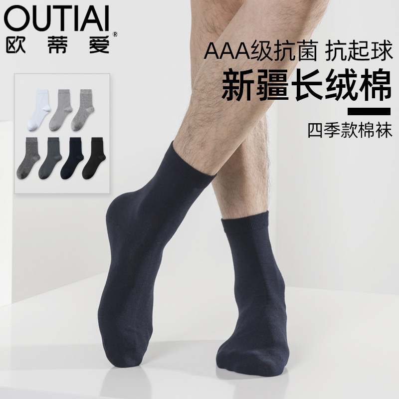 欧蒂爱袜子男中筒春夏季商务正装防臭吸汗秋冬透气厚款棉袜黑色袜