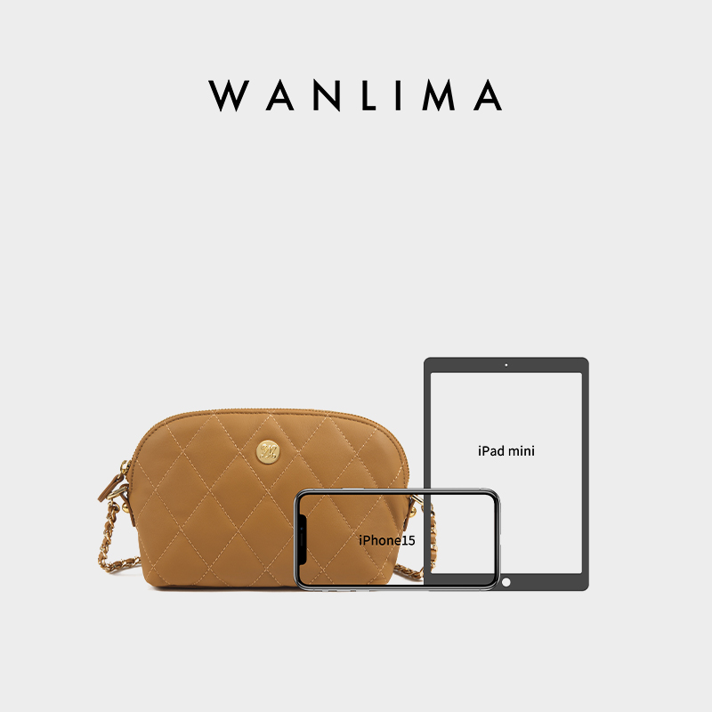 万里马真皮菱格贝壳包手机包小香风女包斜挎单肩链条包女