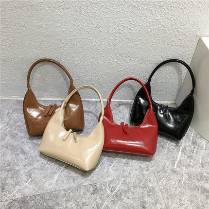 小脏柜 韩国东大门秋冬新款迷你漆皮手提包红色结婚包百搭新月包