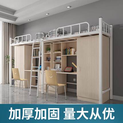 上床下桌员工双人公寓床大学生宿舍简约单人上床下柜高低床铁艺床