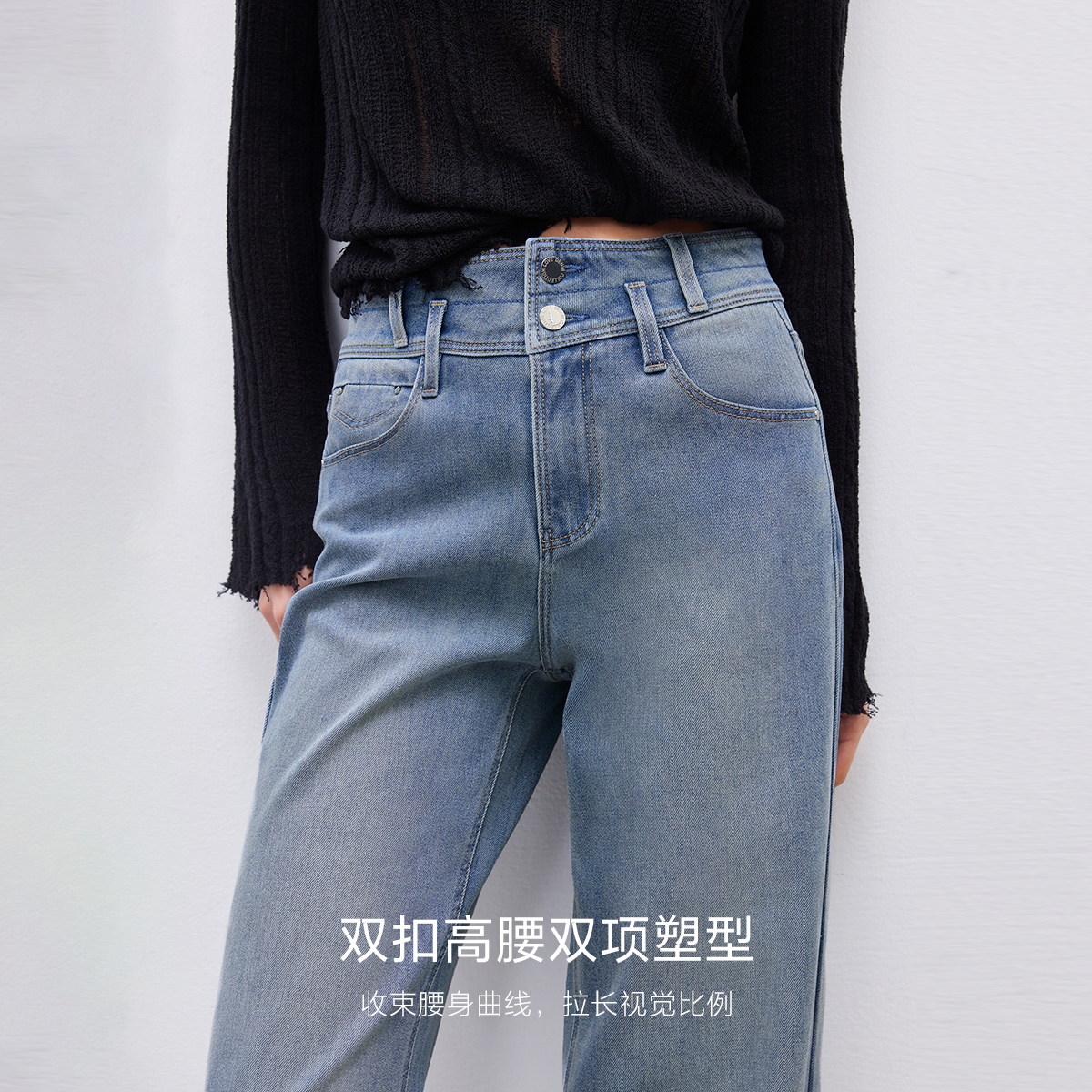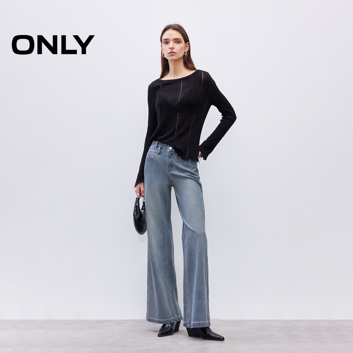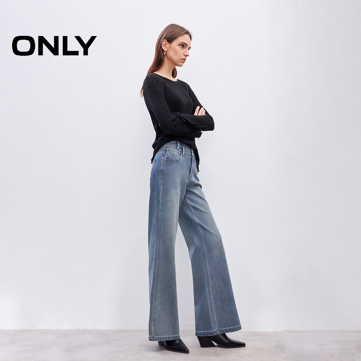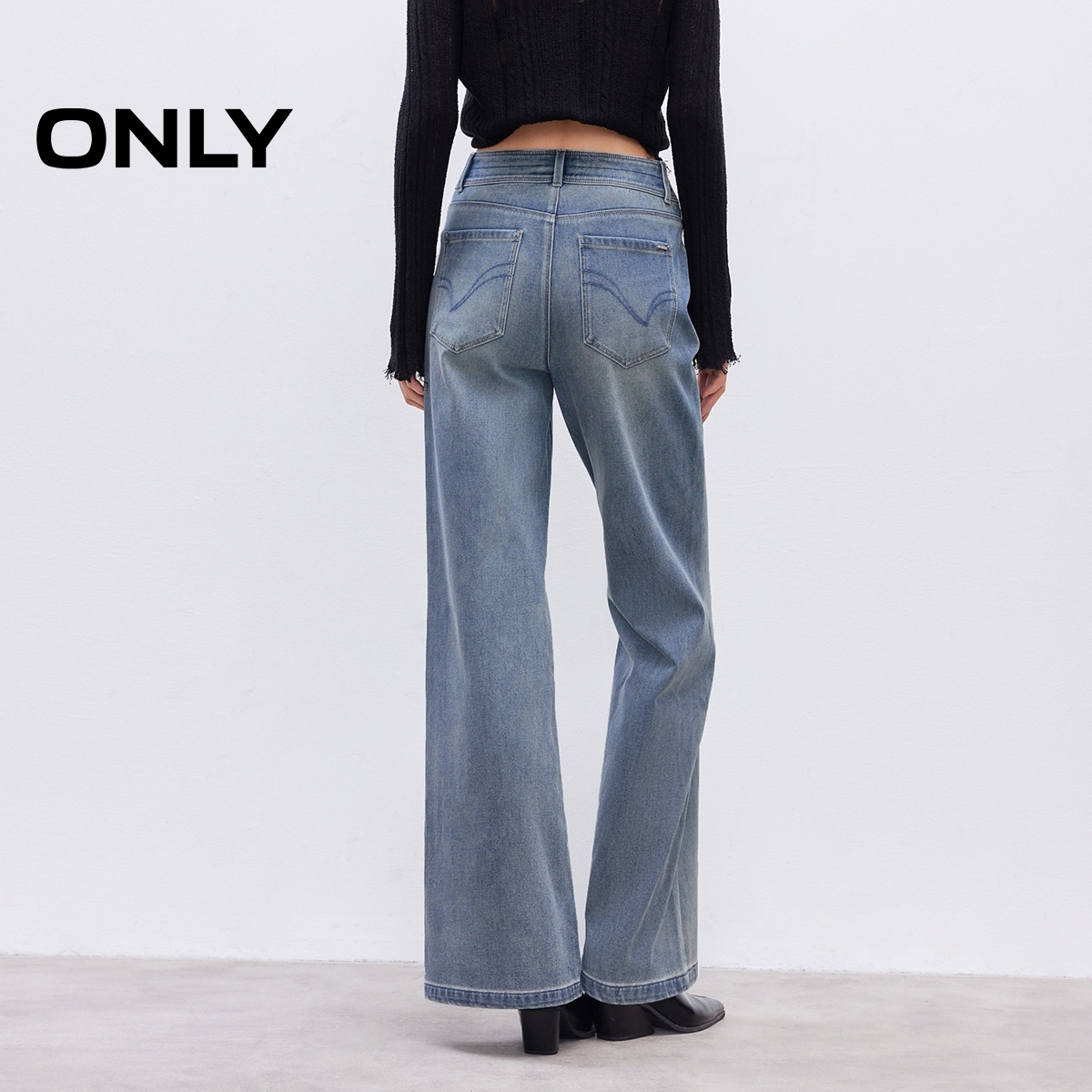 ONLY2025秋季新款显瘦收腹高腰做旧水洗约克剪裁宽松微喇牛仔裤女