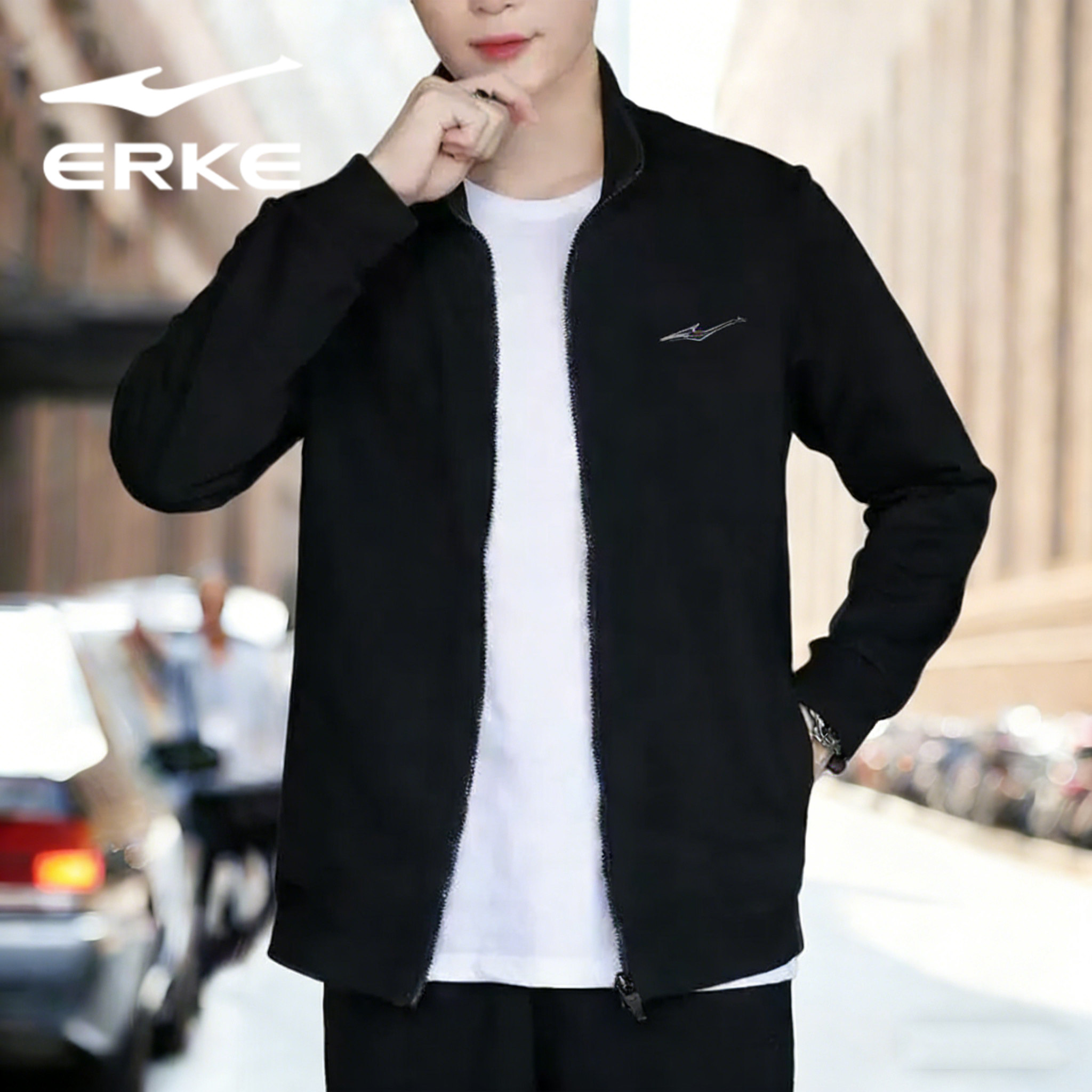 鸿星尔克外套男装春秋男士立领开衫卫衣薄款夹克旗舰店运动服上衣