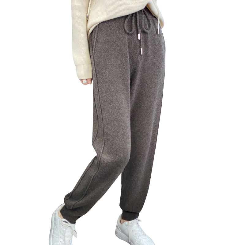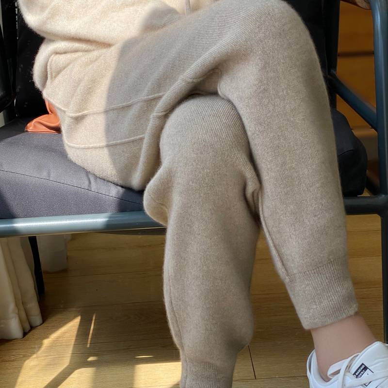秋冬纯羊绒高腰小脚裤女休闲松紧带腰抽绳直筒羊毛显瘦针织打底裤