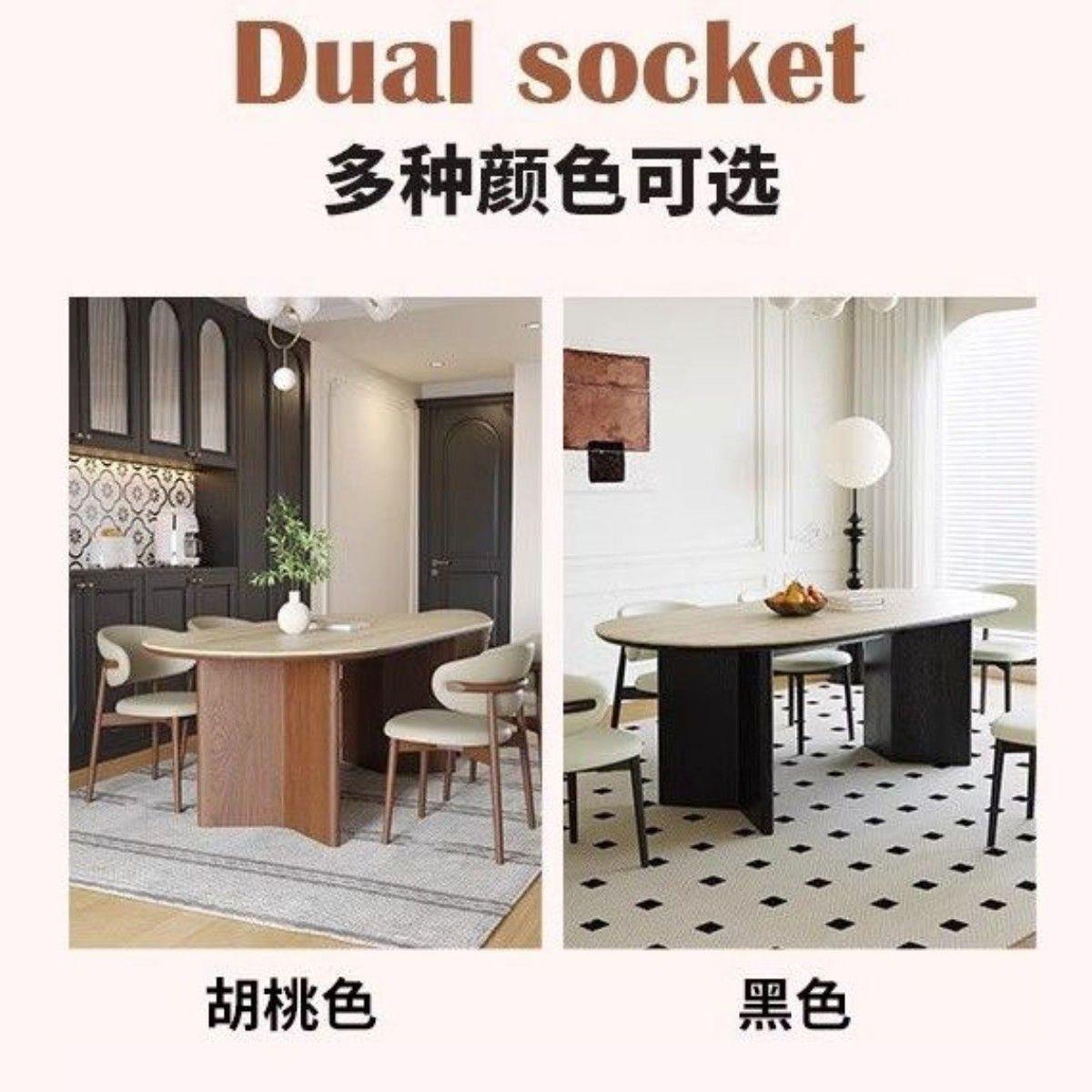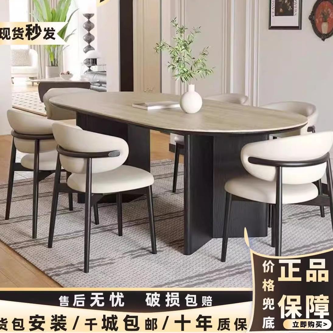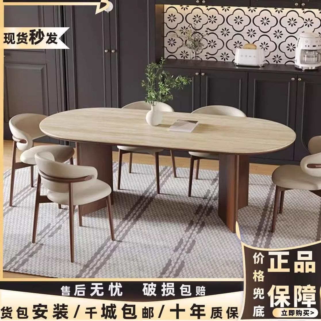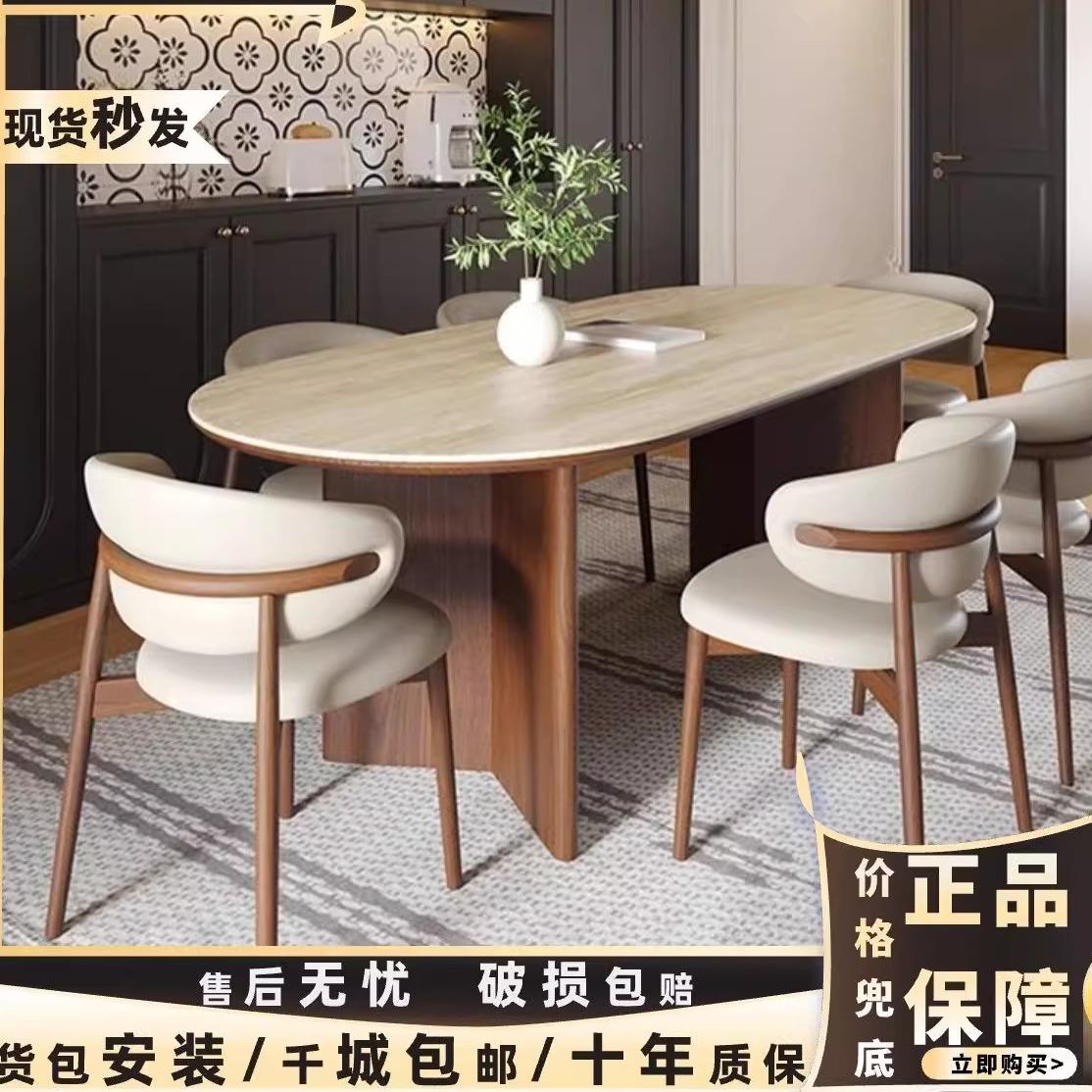 餐桌椅新款椭圆形小户型家用岩板中古风2024法式组合洞石餐桌实木