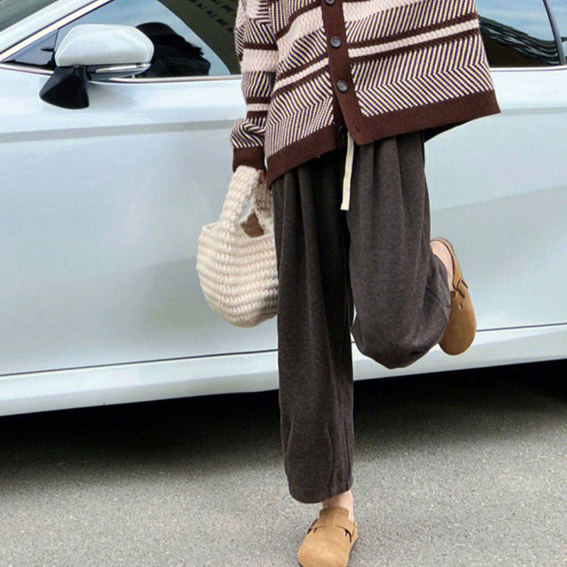 145矮个子七分糯米阔腿裤女秋冬加绒松紧高腰九分休闲萝卜裤子xxs