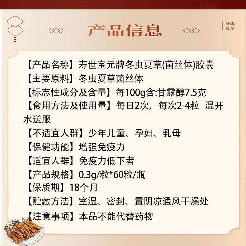 冬虫夏草王胶囊免疫力调节体质虚弱寿世宝元牌冬虫夏草菌丝胶囊BT