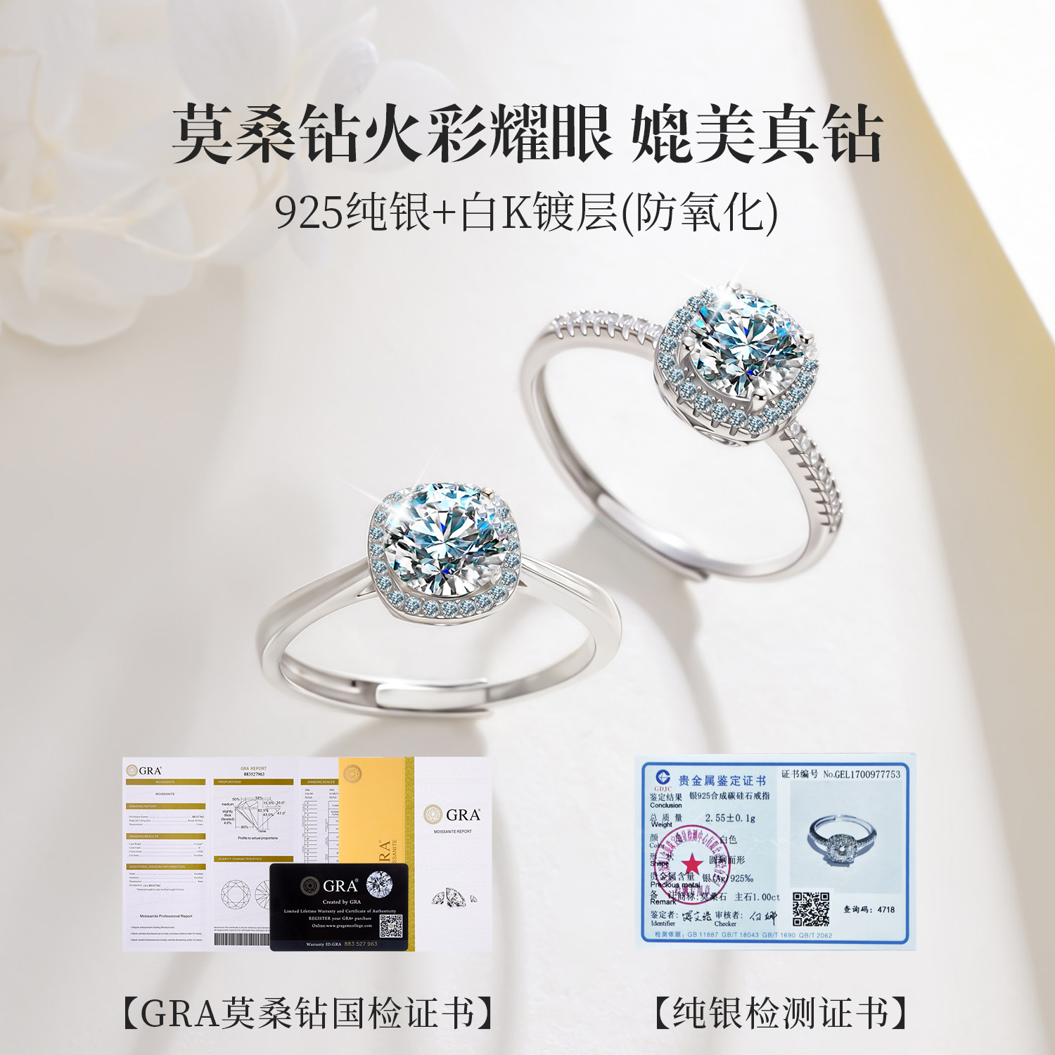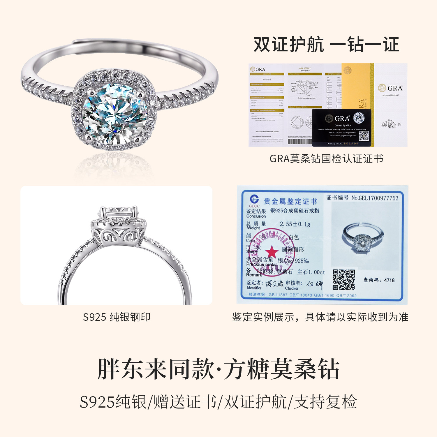 胖东来同款 专柜小方糖戒指一克拉S925纯银莫桑钻戒指求婚结婚