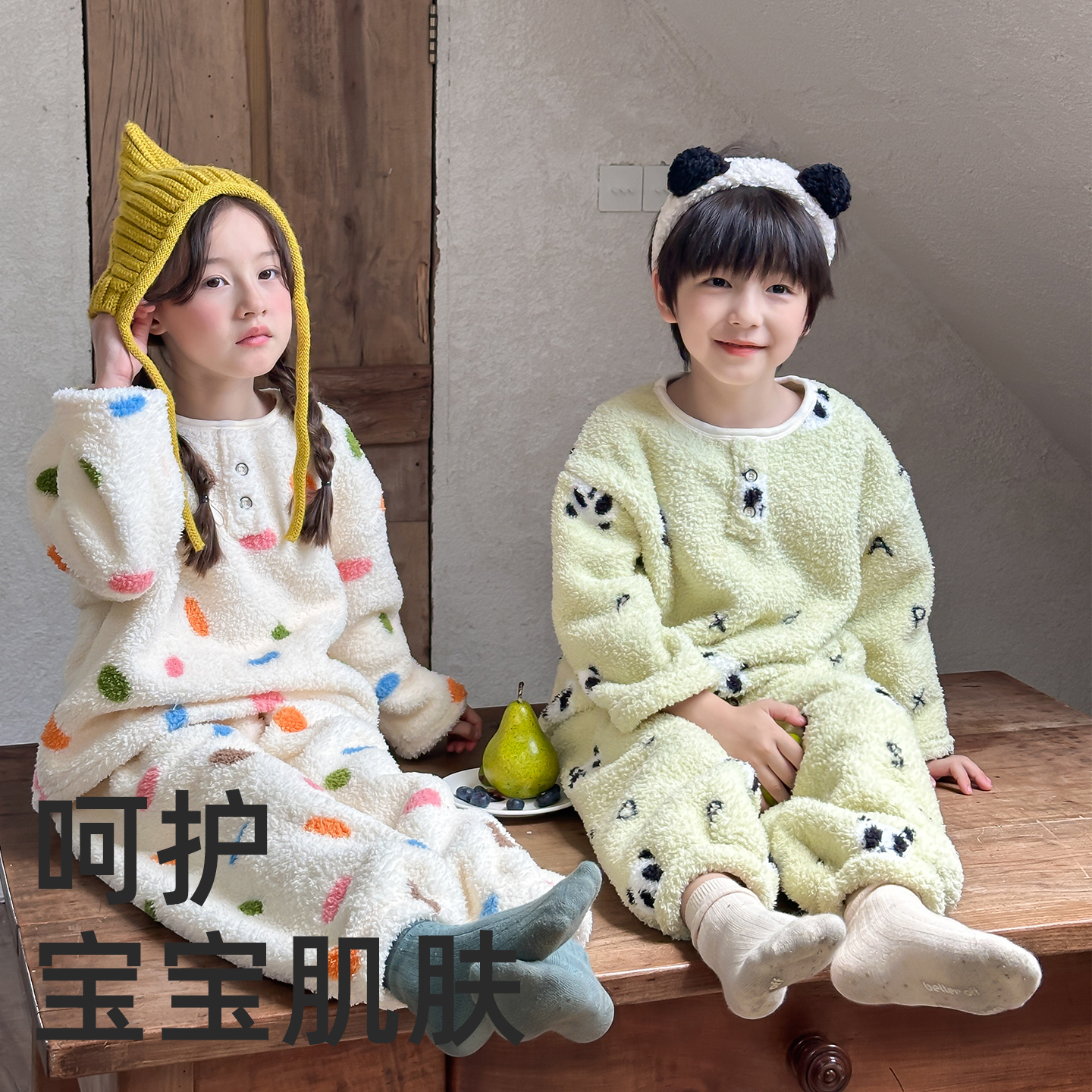 儿童睡衣加绒加厚秋冬长袖男孩家居服套装女童中大童网红保暖套装
