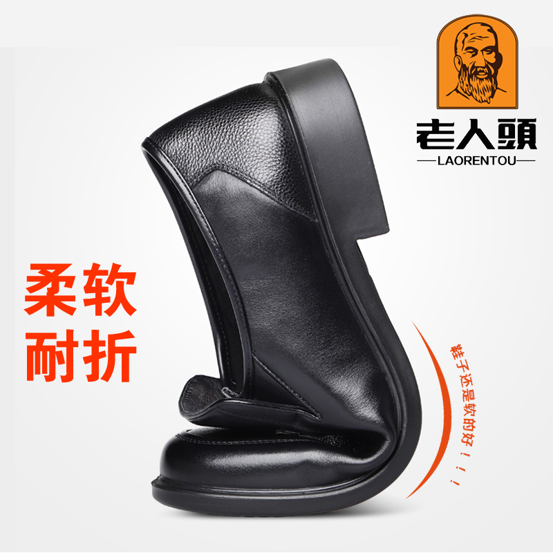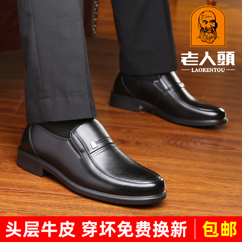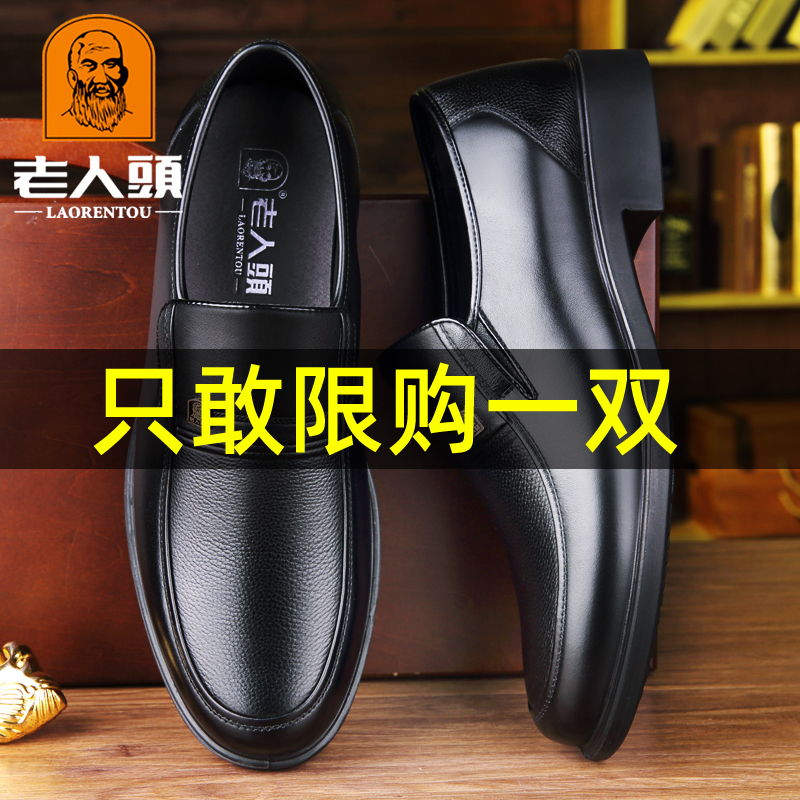 老人头皮鞋男真皮商务正装男鞋软皮软底中年爸爸鞋防滑休闲牛皮鞋