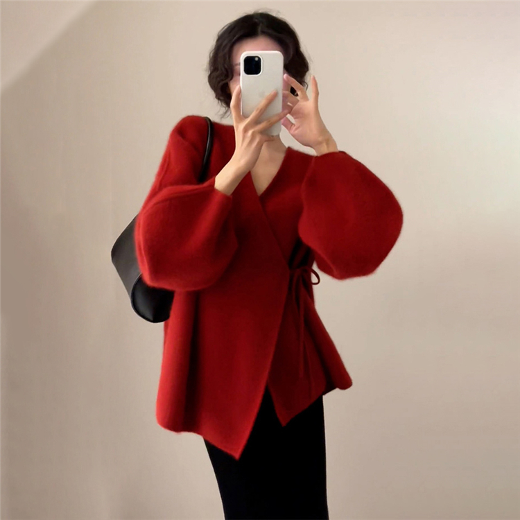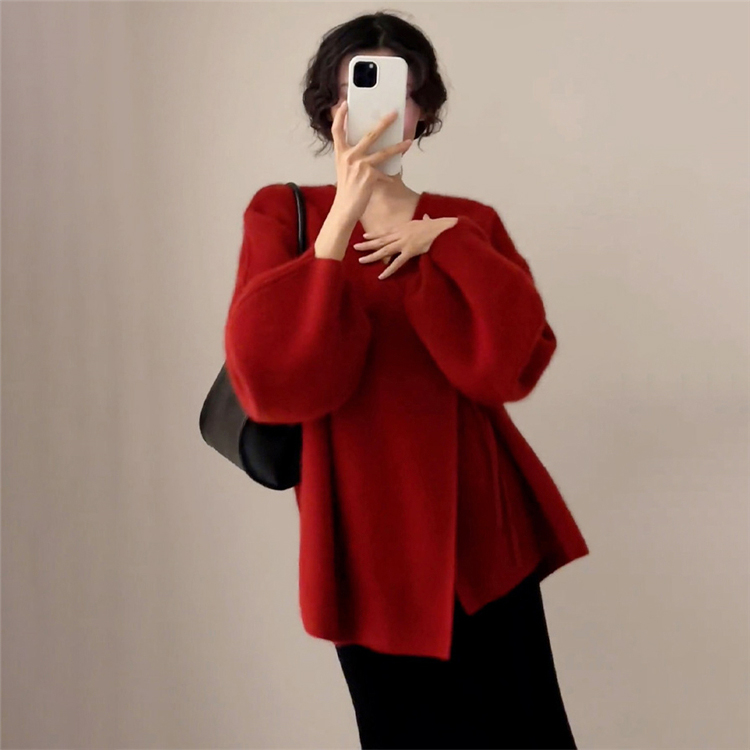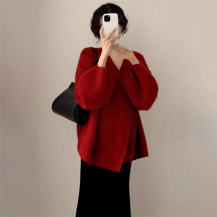 孕妇连衣裙套装秋冬2025新款宽松过年红色毛衣上衣内搭针织打底女