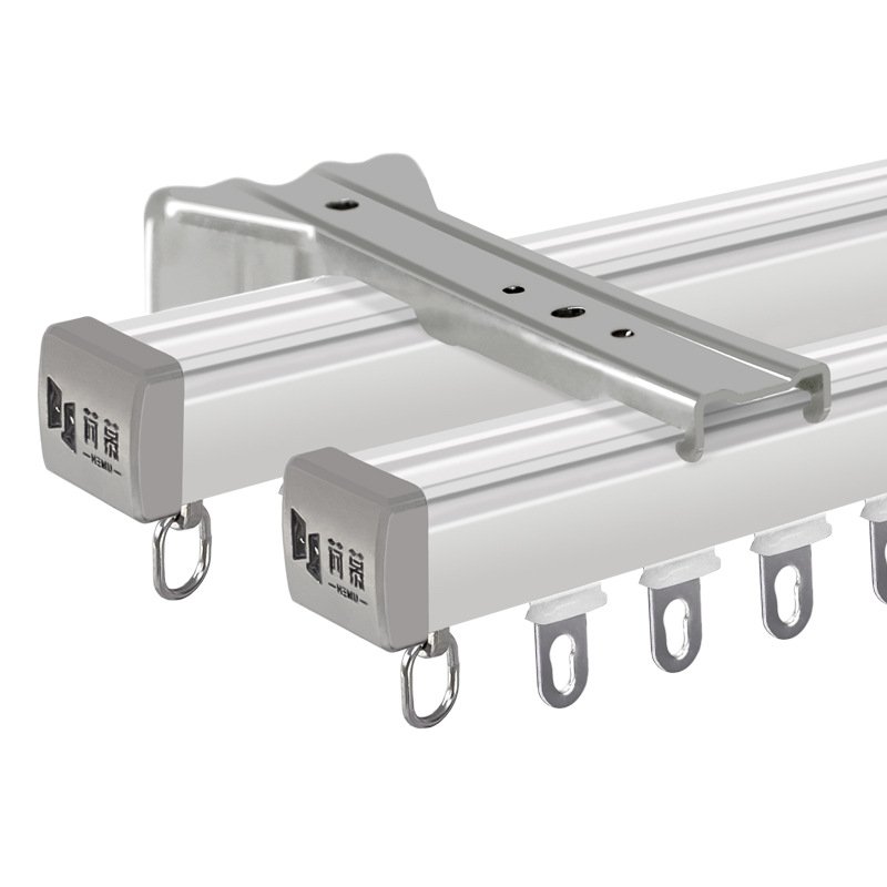 加厚静音窗帘轨道直轨单双轨顶侧装窗帘杆滑轨导轨铝合金窗帘滑道