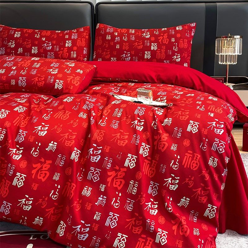 大红色婚庆四件套百福喜被新婚床单被N套新房结婚床上用品