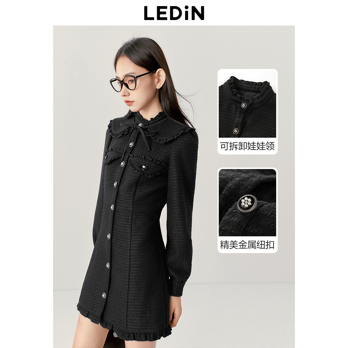 乐町精致千金风连衣裙女气质外套式黑裙小个子连衣裙CWFAD4200