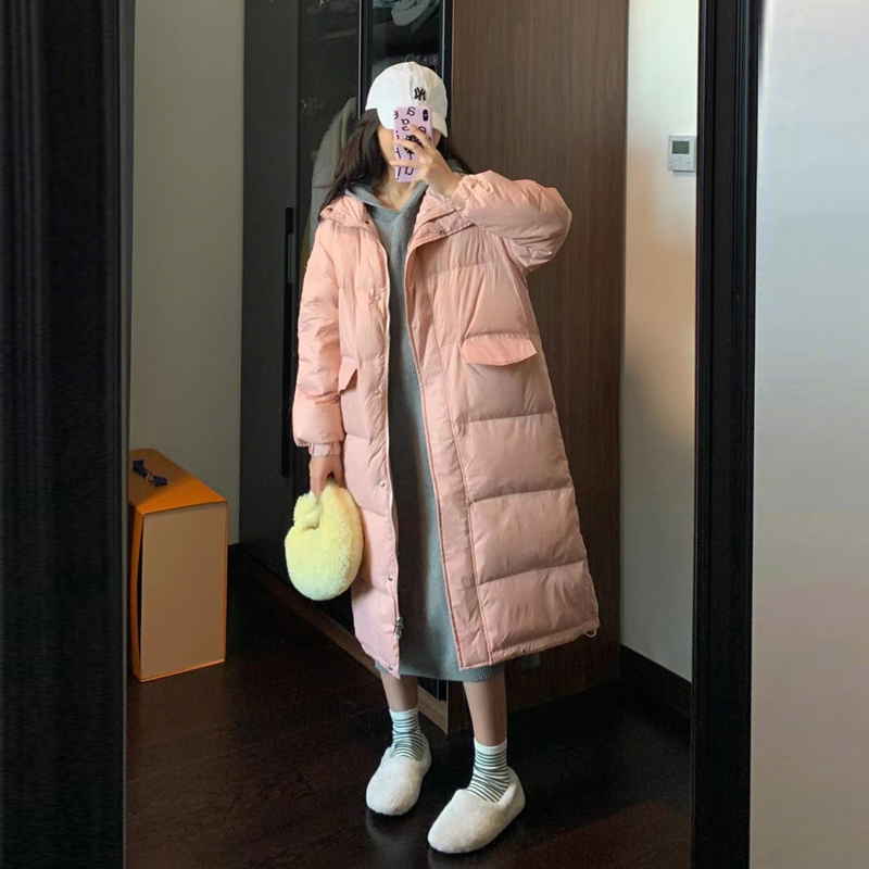 90白鸭绒羽绒服女2025冬季新款宽松韩版港风复古设计感中长款外套