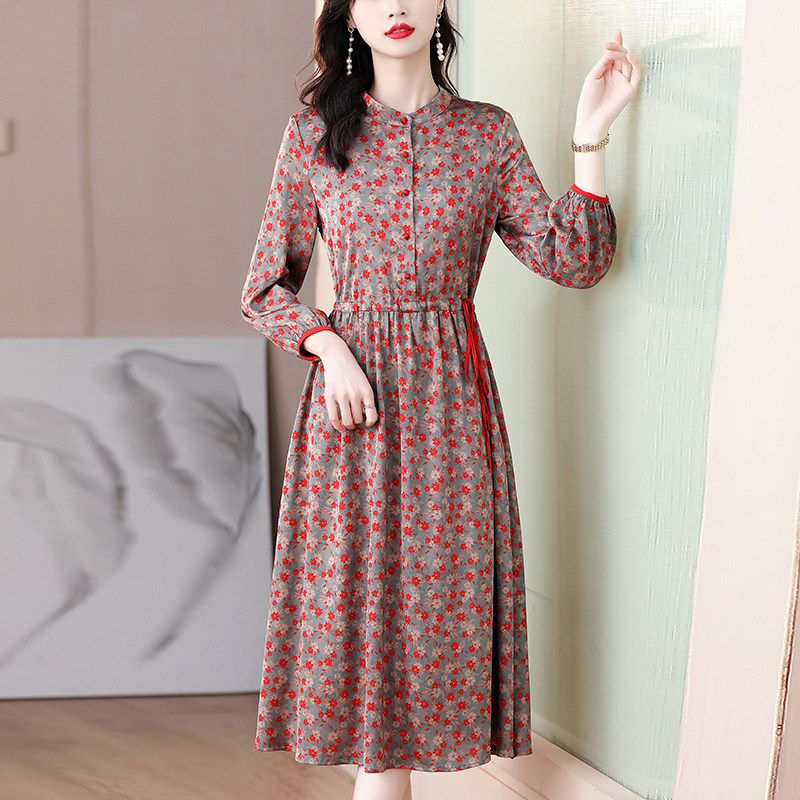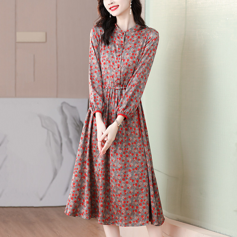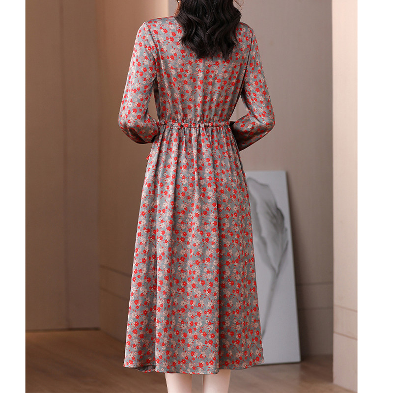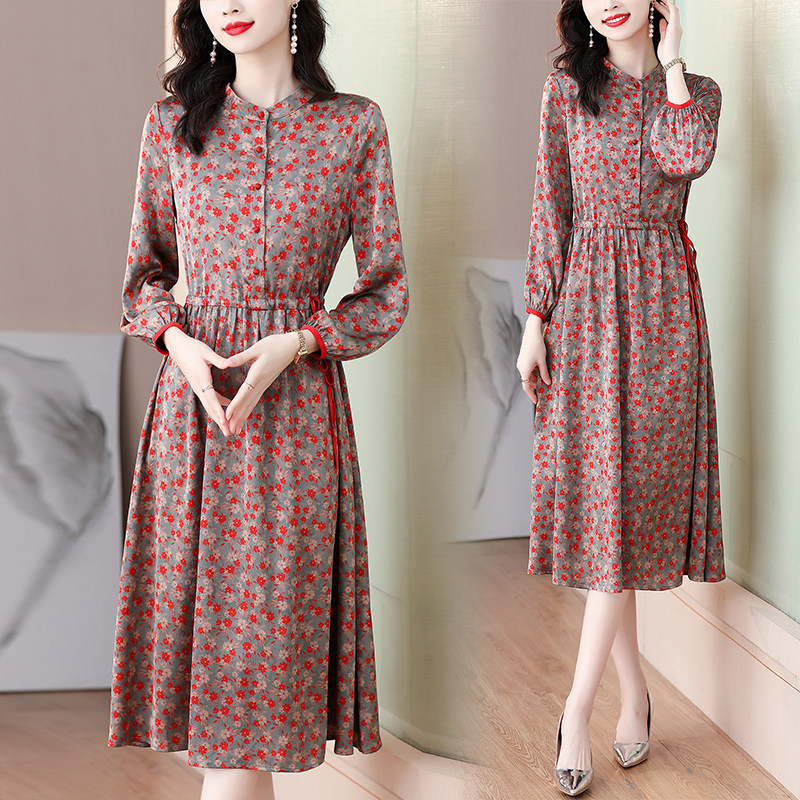 杭州真丝连衣裙正品桑蚕丝2025秋季新款中老年妈妈气质长袖碎花裙