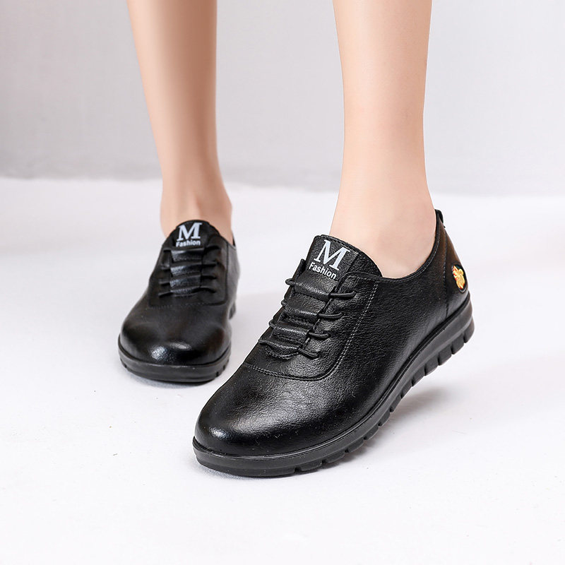 2024新款妈妈鞋平底中老年女鞋老人单鞋真皮软底舒适防滑奶奶皮鞋
