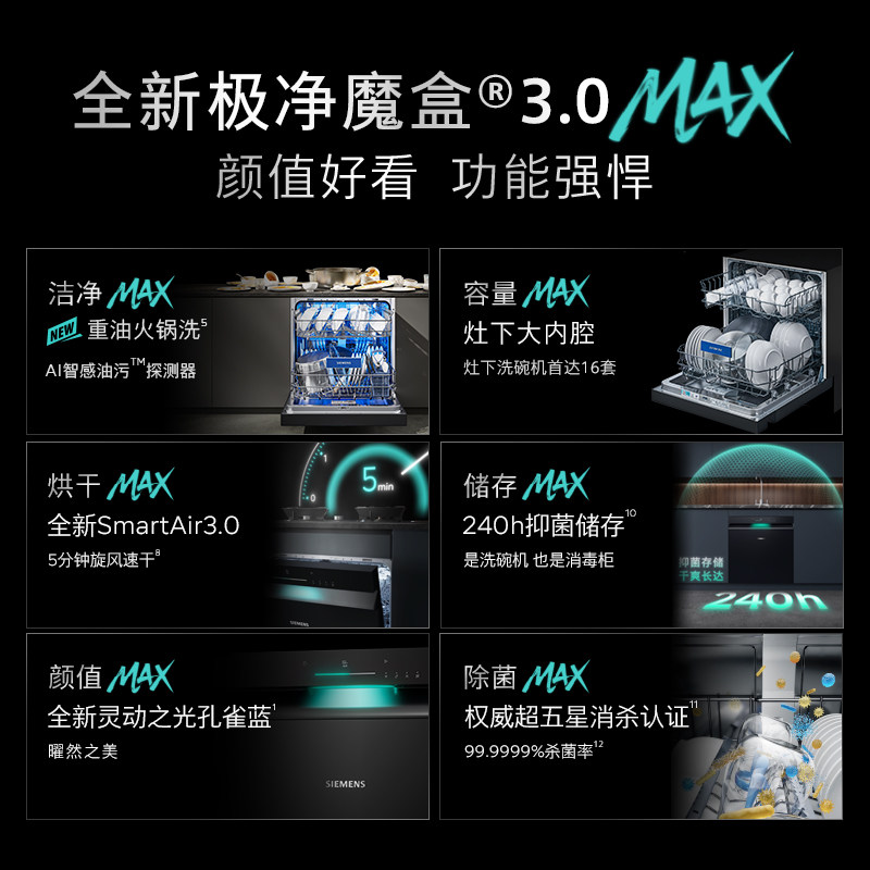 [10月新品]西门子16套极净魔盒灶下嵌入式洗碗机小型除菌家用EB33