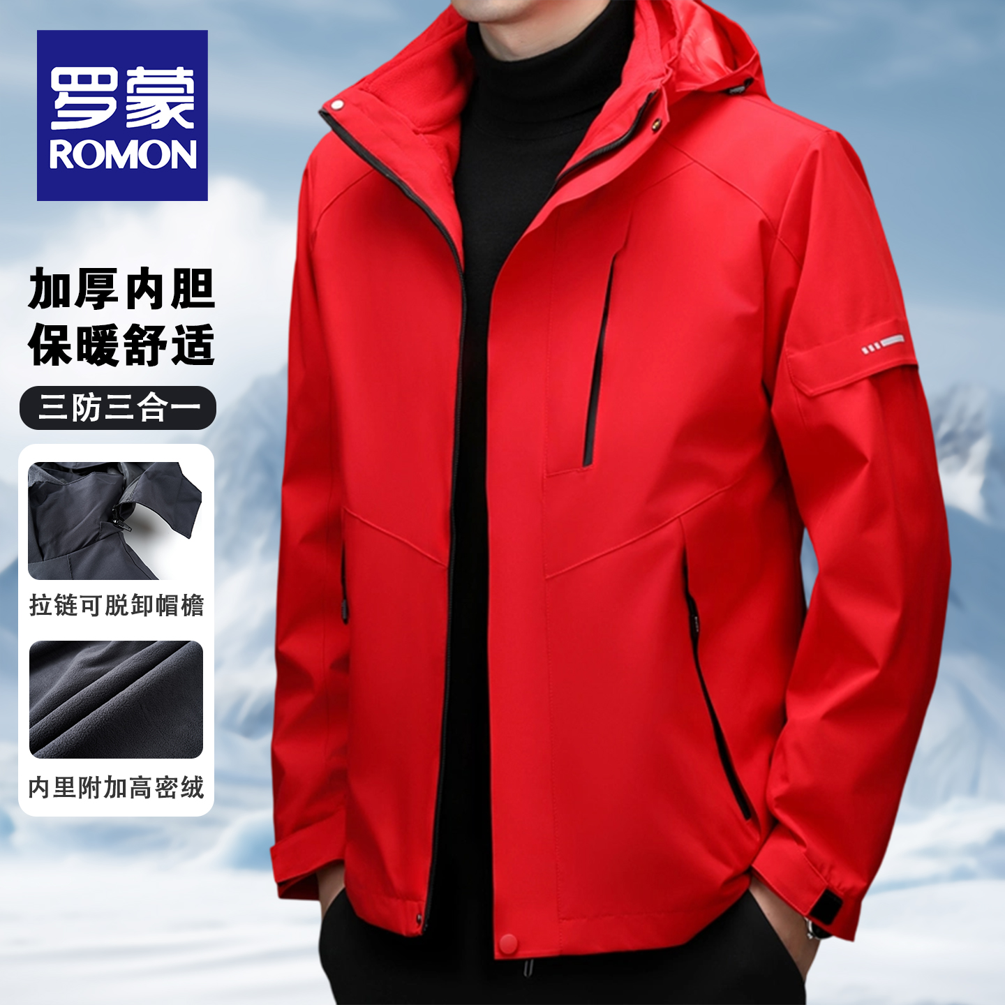罗蒙冲锋衣外套男三合一可拆卸秋冬季加绒加厚户外防风登山服夹克
