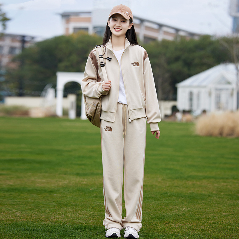 初高中生休闲套装少女运动服拉链衫2024春季新品大童学院风两件套