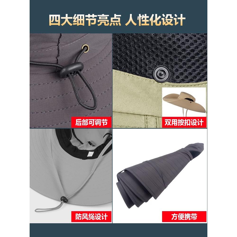 夏季遮阳帽防晒帽男女士户外登山钓鱼大檐遮脸防紫外线渔夫太阳帽