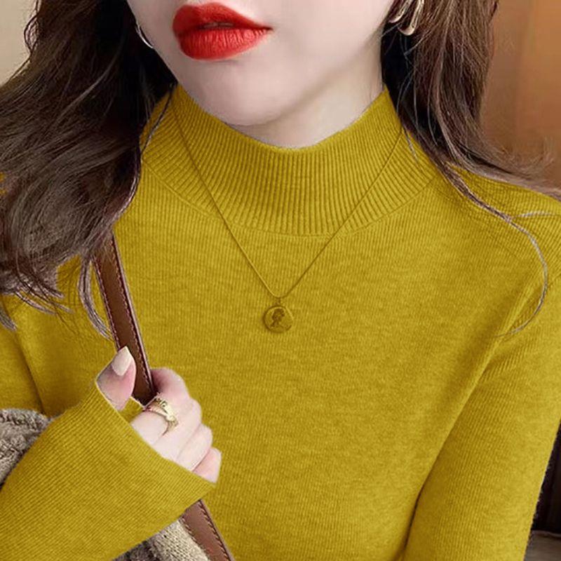 半高领打底衫女秋冬新款修身内搭色套头毛衣长袖针织衫上衣1025z