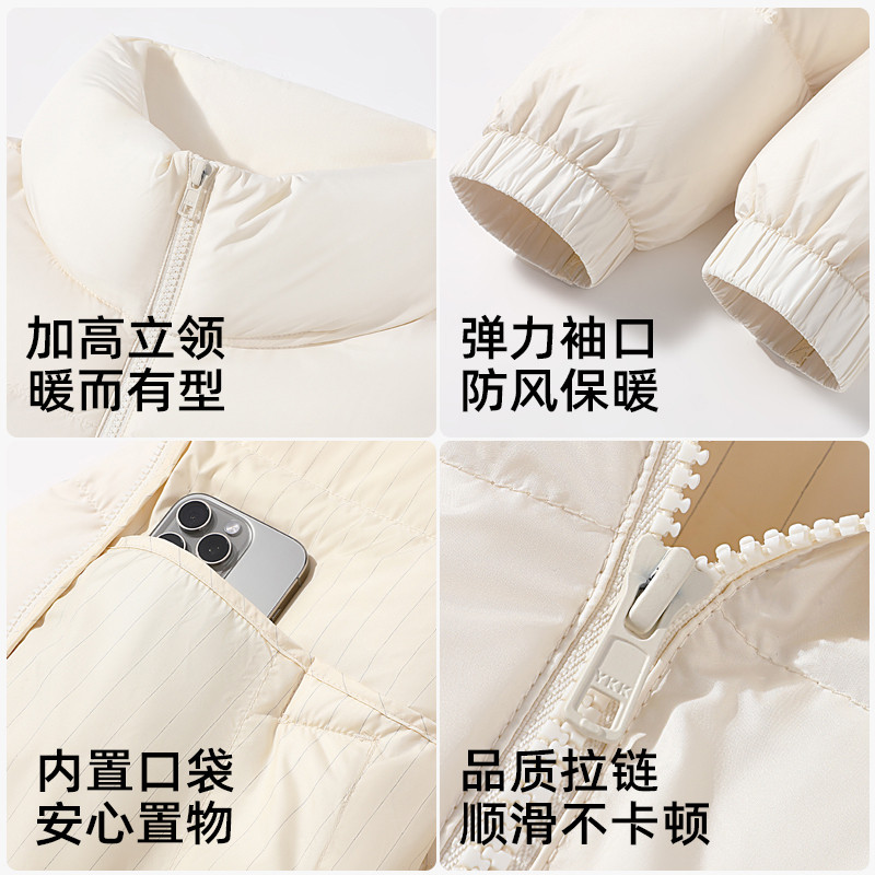 JR真维斯白色加厚羽绒服男2025冬季新款美式保暖潮流男士立领外套